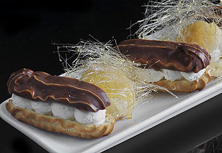 פחזניות ממולאות גלידת פיסטוק עם רוטב שוקולד חם